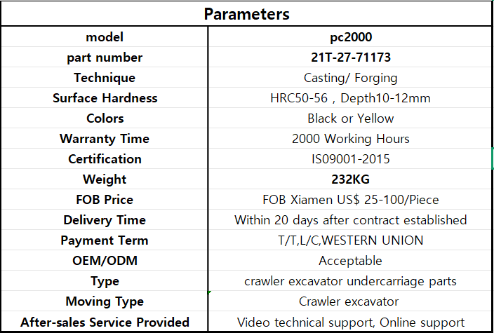 komatsu-pc2000(21T-27-71173) -sprocket /yopangidwa ndi CQC -track drive sprocket/pc2000 track gear/quanzhou undercarriage part factory, top quality as OEM, mtengo wabwino ngati China.